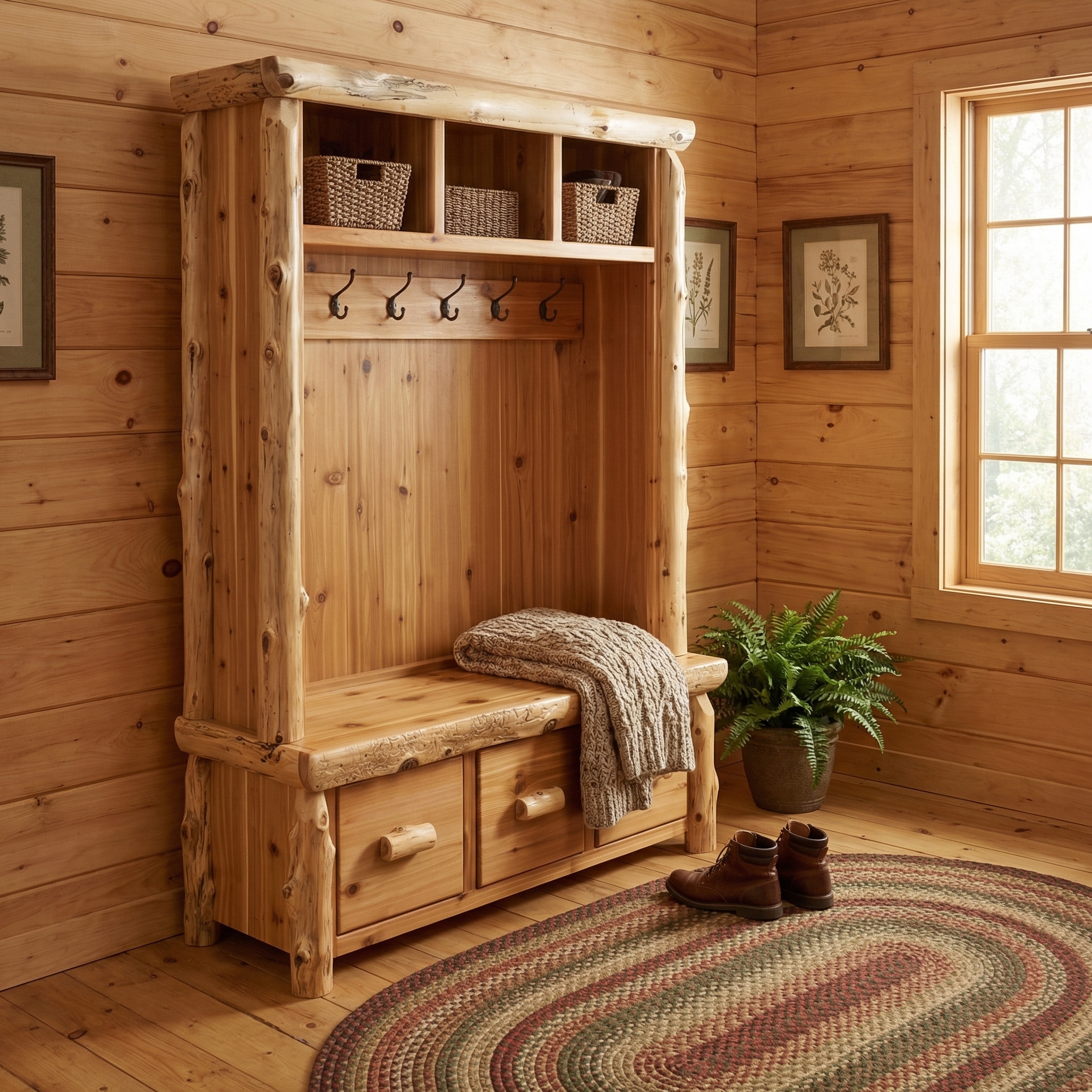 Live product listings in this furniture family already use entry locker phrasing across cedar, hickory, and other rustic styles, which supports this as a strong category focus.