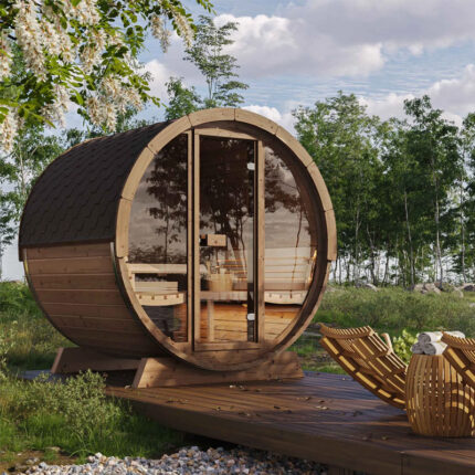 Browse our selection of barrel saunas and find the ideal model to suit your outdoor space. Embrace the luxury and health benefits of a cedar barrel sauna today.