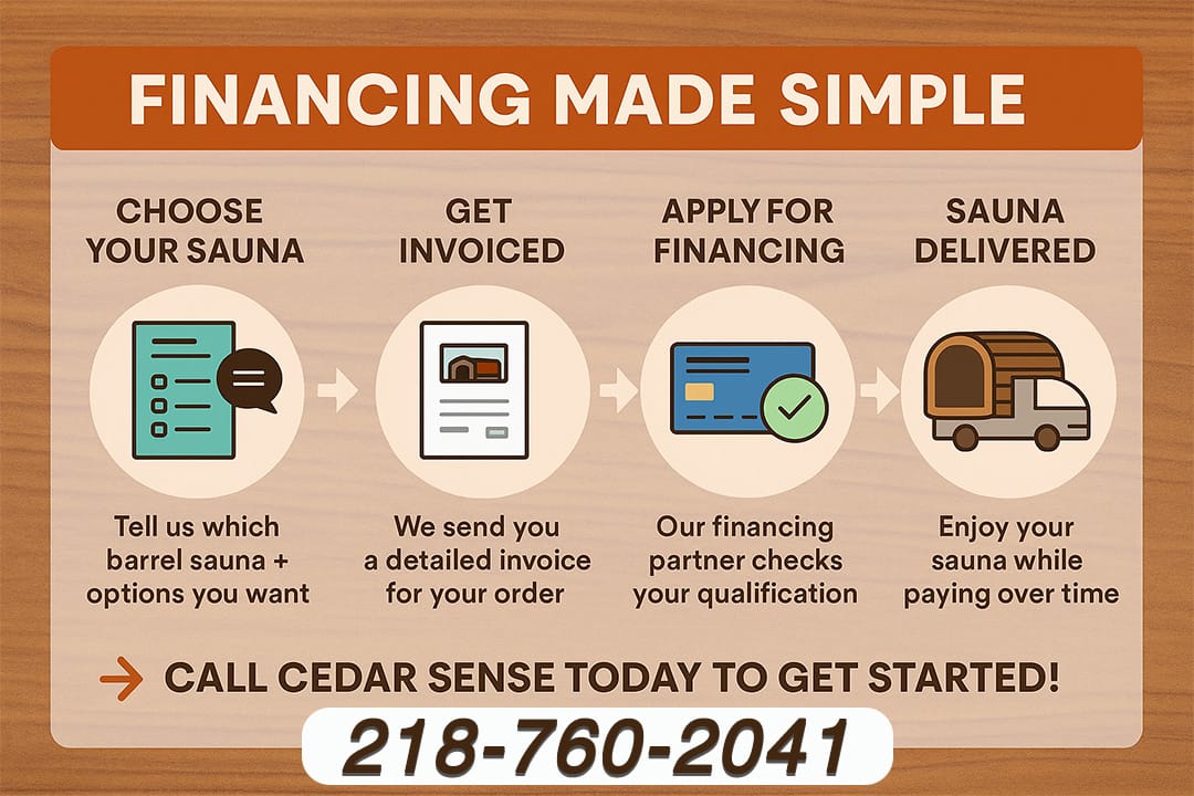 Saunas can be picked up (upon request) from where they are manufactured in Grand Rapids, MN or Waubun, MN.