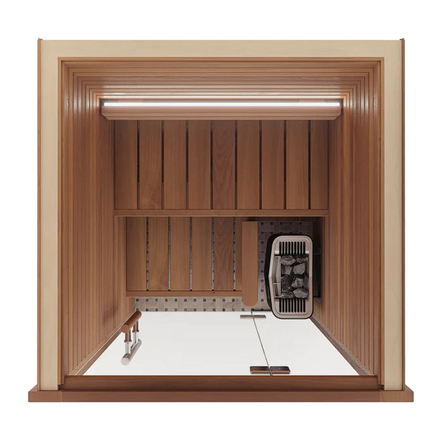 The Auroom Cala Glass Mini arrives as a complete premium sauna package — engineered components, luxury finishes, and a curated accessory kit so you can enjoy your first session immediately after installation.
