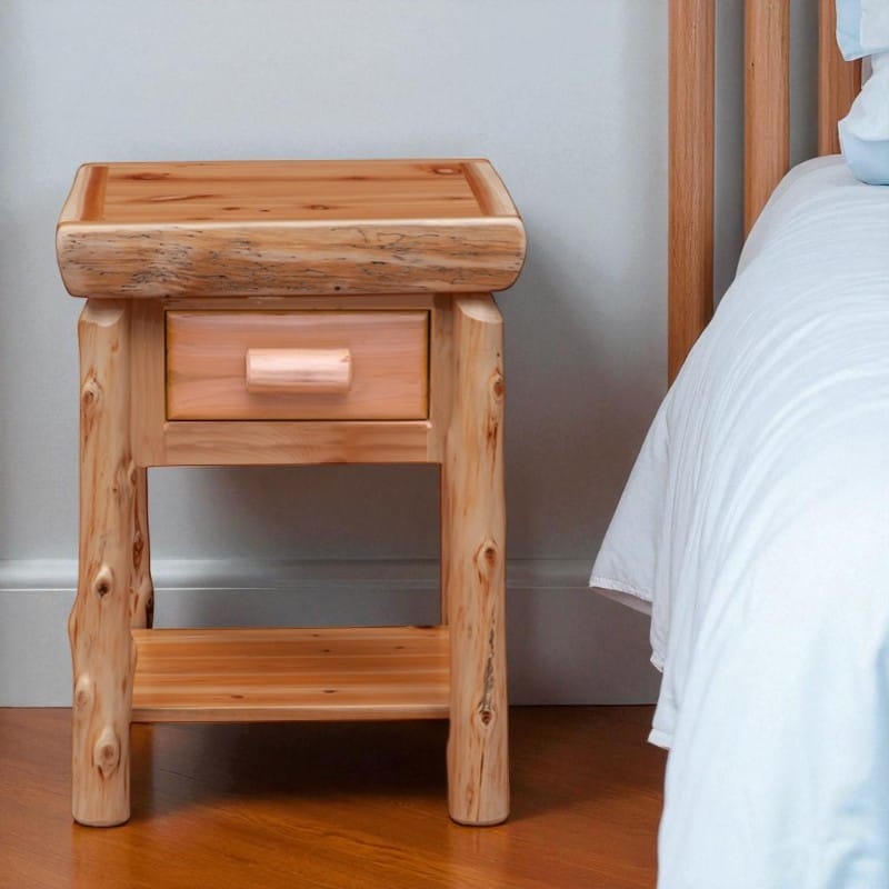 Cedar Log 1 Drawer Nightstand with Shelf | Rustic Light Wood Nightstand
