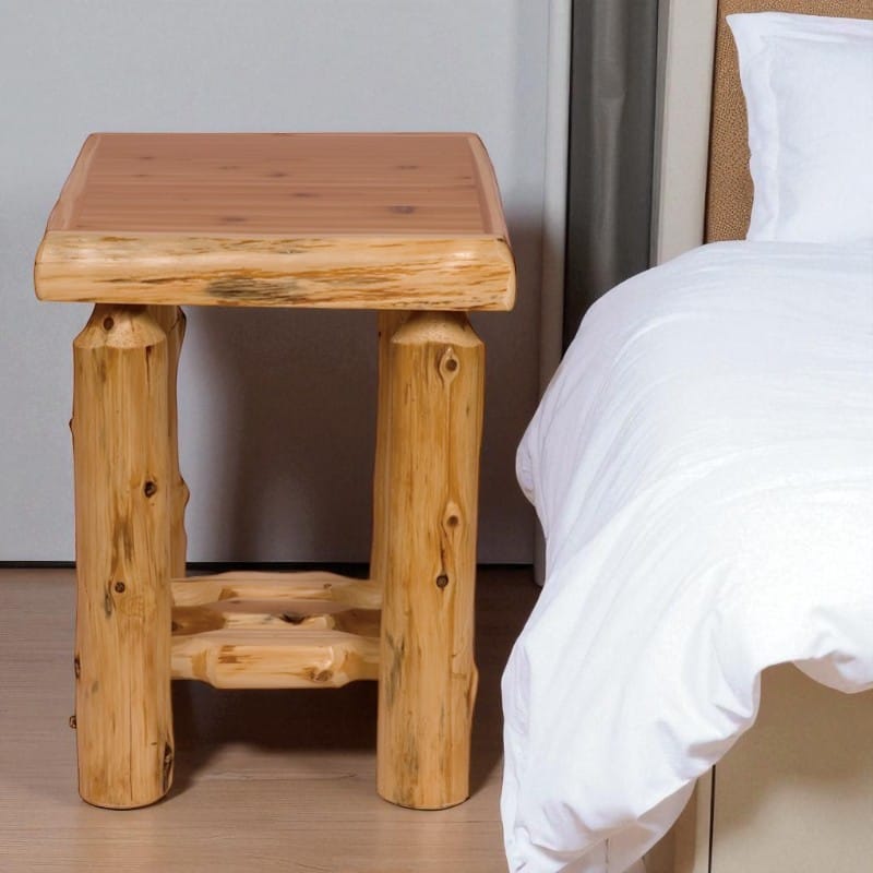 Cedar Log Open Nightstand | Rustic Small Nightstand