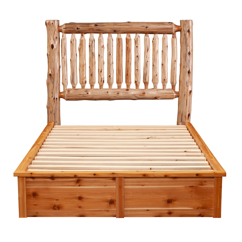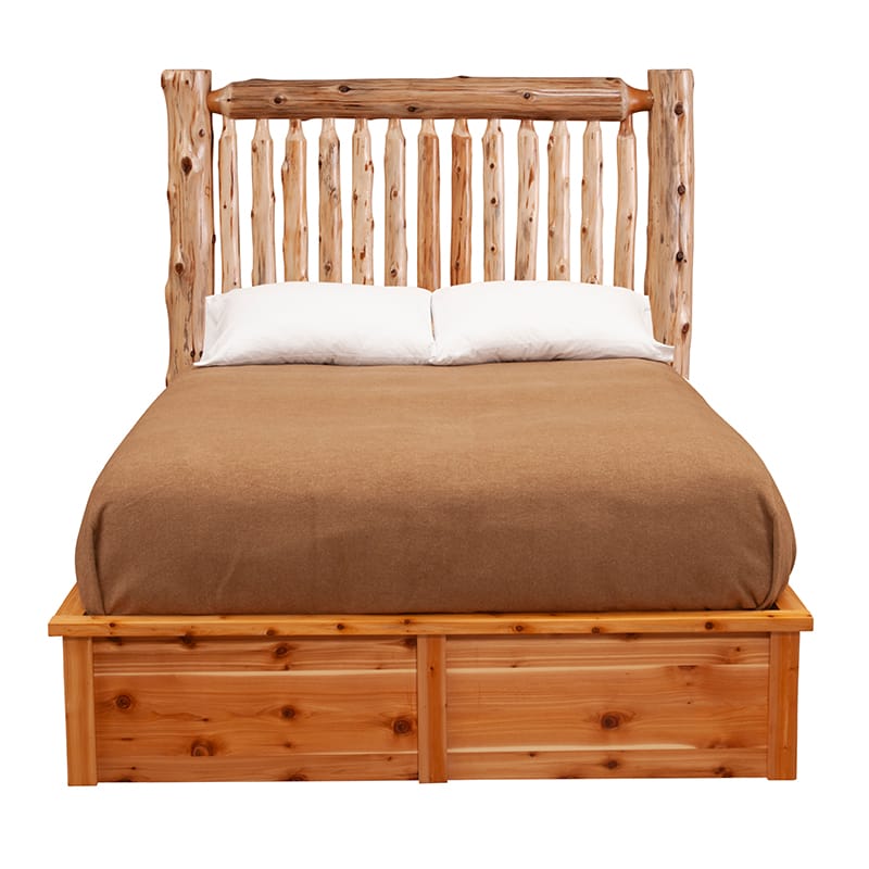 Cedar Log Small Spindle Platform Bed | Wooden Frame Bed | Fireside Lodge Collection