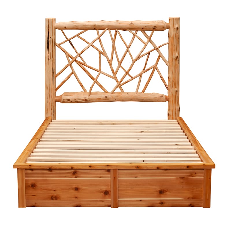 Cedar Log Twig Platform Bed | Handcrafted Log Cabin Bed | Fireside Lodge Collection