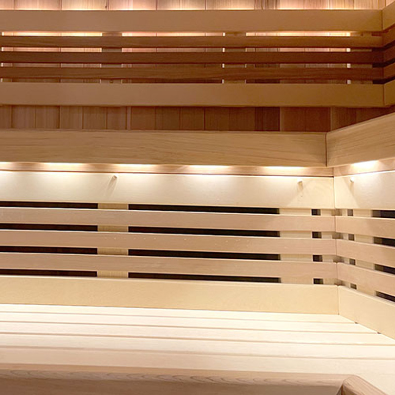 We offer a broad variety of wood species that are equally excellent choices for saunas and provide wide design versatility, Western Red Cedar is the traditional choice in North America. We selects only premium-quality Cedar with smooth, even, straight grain and a consistent light, reddish-brown color. In addition to its natural beauty, Cedar possesses excellent thermal characteristics, making it comfortable to the touch even in the high heat of a sauna. Western Red Cedar naturally resists decay, insects, and is long-lasting. It also has organic compounds that help repel water and prevent insect damage.