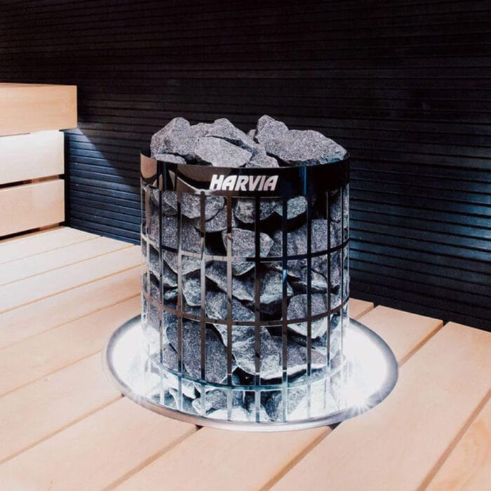 The Harvia Cilindro sauna’s heating unit requires Xenio Control for operation.