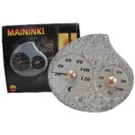 A must-have accessory for your home sauna, the beautiful Hukka Maininki Sauna Thermometer and Hygrometer is made from Finnish soapstone and is stylishly crafted to suit any sauna interior. This contemporary combination allows you to find the right figures for humidity and heat to get the best possible steam for your needs. Makes a fine gift for any sauna lover.