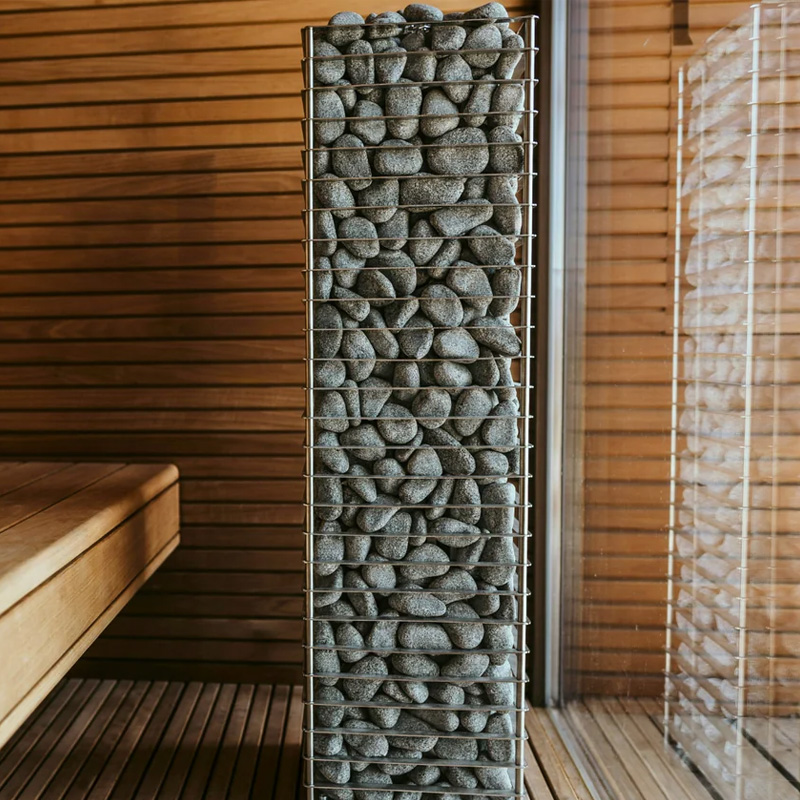 It’s recommended to use round sauna stones in HUUM sauna heaters. Round stones complement the design of the heaters and provide milder steam.