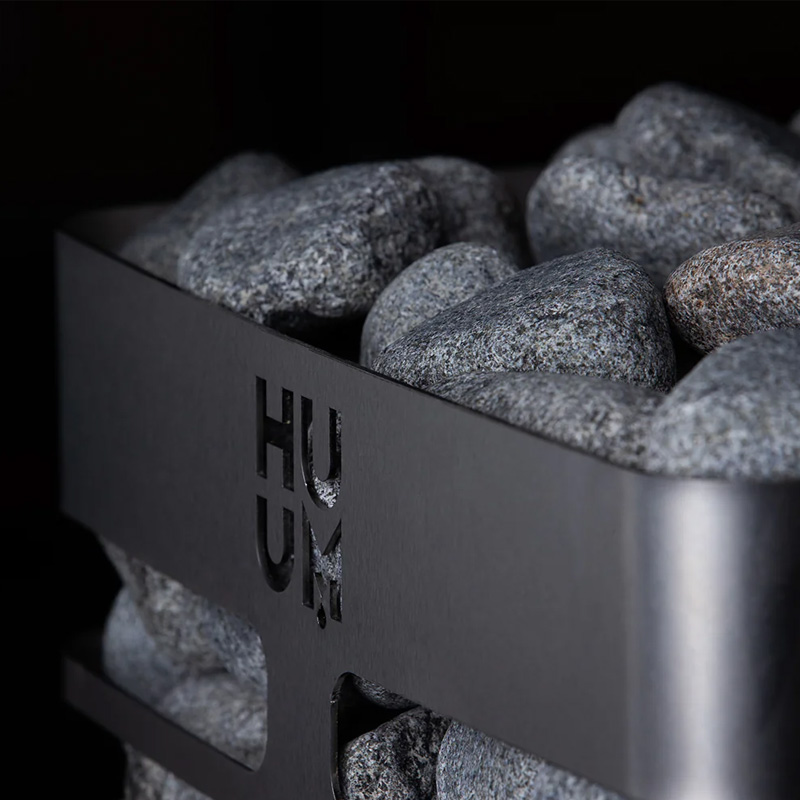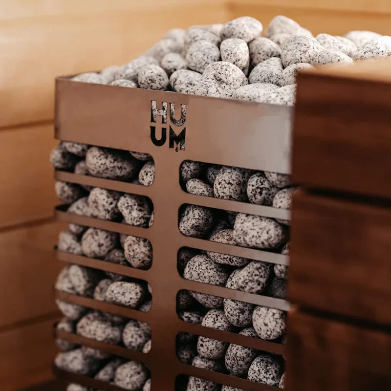 It’s recommended to use round sauna stones in HUUM sauna heaters. Round stones complement the design of the heaters and provide milder steam.