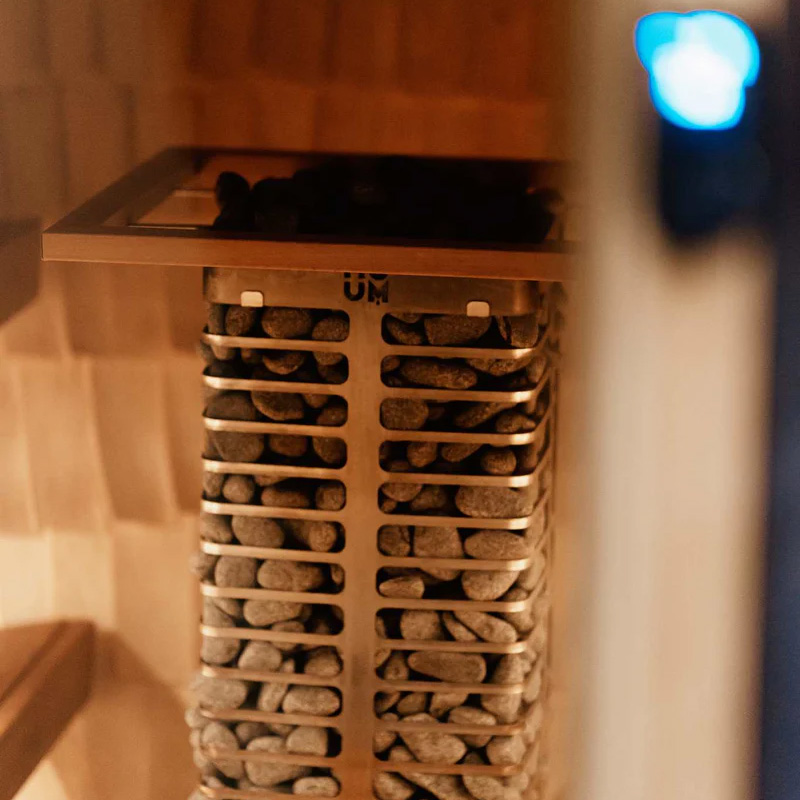 The amount of metal used in HUUM sauna heaters is very small – this ensures that majority of the heat derives from the stones, and not from the metal.