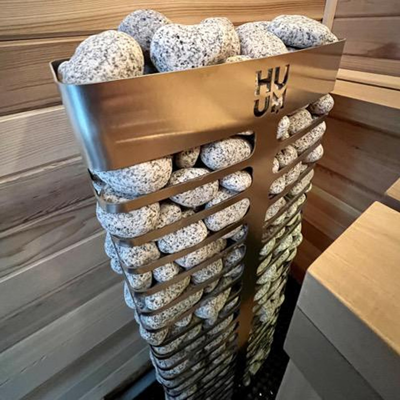 It’s recommended to use round sauna stones in HUUM sauna heaters. Round stones complement the design of the heaters and provide milder steam.
