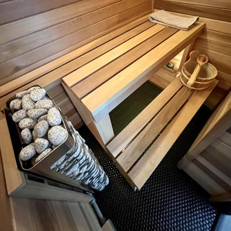 This maximizes the proportion of beneficial negative ions in the air, which is also high in the traditional wood-heated sauna.