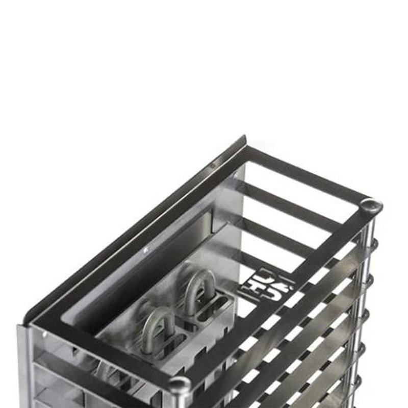 The STEEL Mini sauna heater is designed for sauna spaces from 106 to 177 cubic feet (CF).