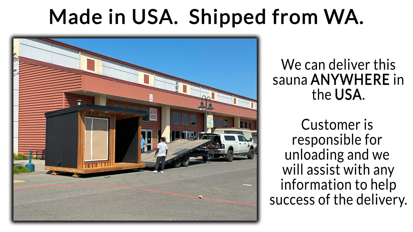 (Saunas are made in Washington state so further out from WA = higher shipping cost. Capped at $3000) - After You Order – Once Cold Creek order is made, we establish shipping cost.
