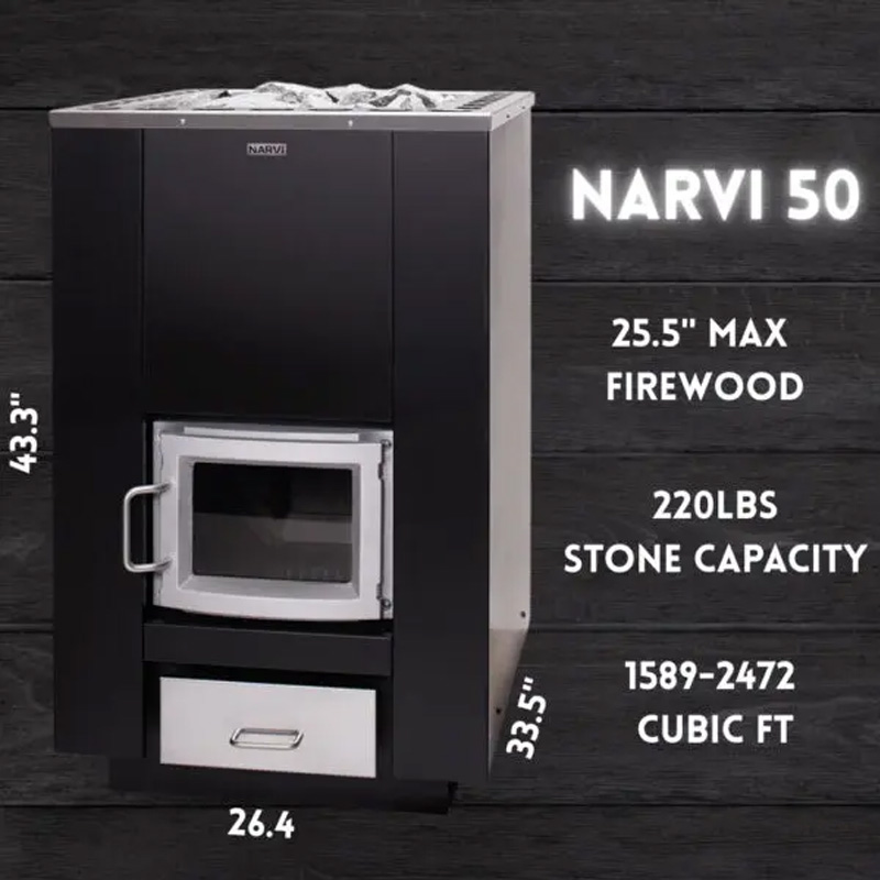 Narvi 30/50 Wood-Burning Sauna Stove | Wood Fired Sauna Heater | Up to 50kW
