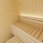 High-quality dimmable LED lighting is dotless for a more elegant appearance and indirectly illuminates the sauna interior from behind the backrests.