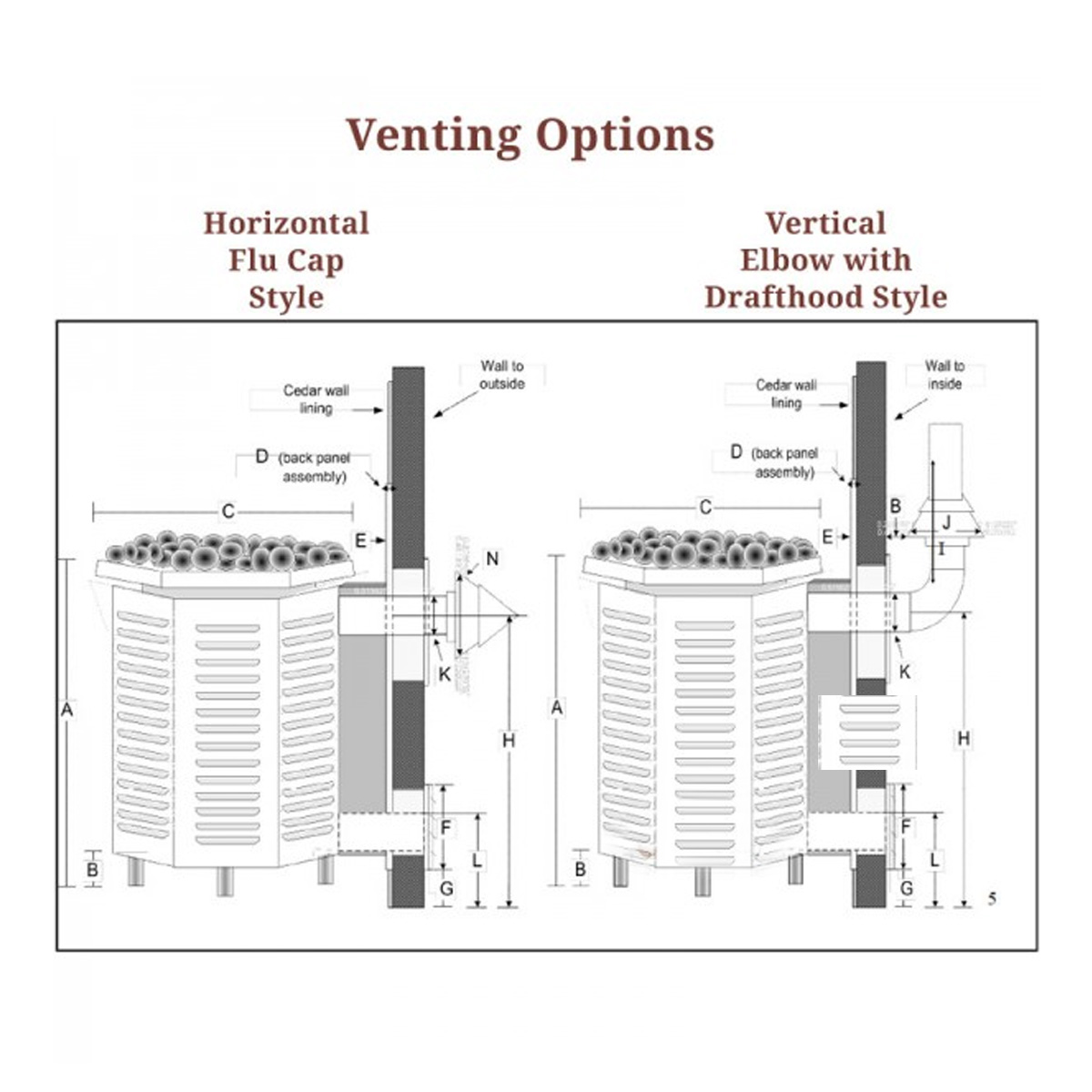 Includes high-density stones and “G” wall controls with a standard 60min or 24hr timer and mechanical thermostat to protect against overheating.