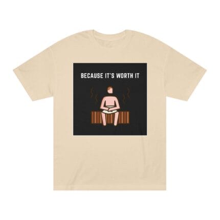 “Because It’s Worth It” Sauna Tee Embrace comfort and style with this classic unisex tee, perfect for any casual outing