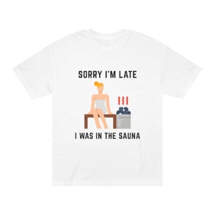 “Sorry I’m Late I Was In The Sauna” Sauna Tee Embrace comfort and style with this classic unisex tee, perfect